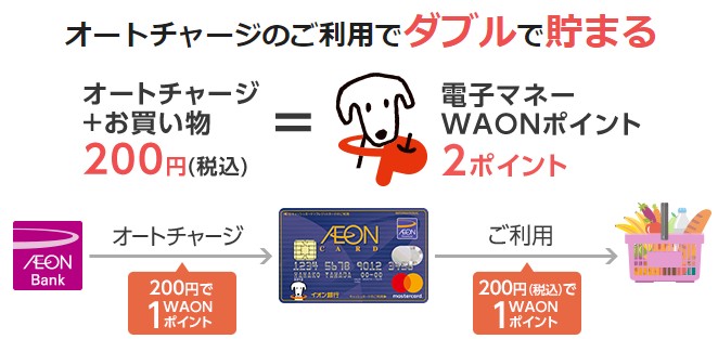- WAONへのオートチャージで0.5%のポイント還元がある