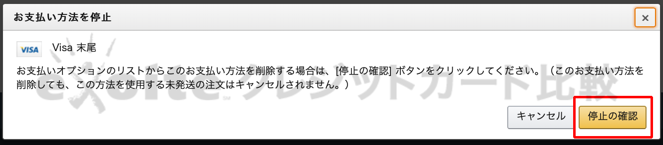 - Amazonではカードの削除=カードの停止
