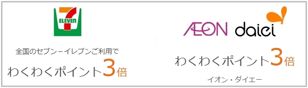 - セブンイレブン、イオン、ダイエーの利用でポイントが3倍(1.5%還元)