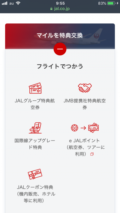 | ショッピング | 200円=1マイル JAL特約店100円=1マイル |