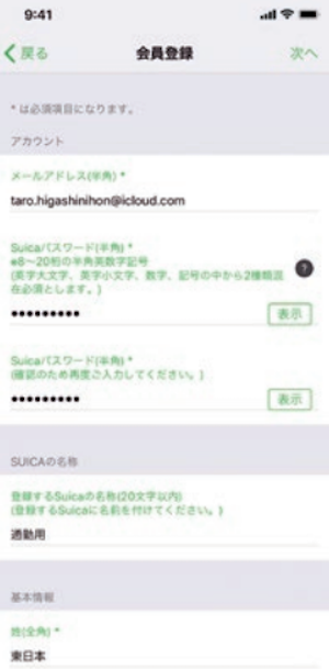 ④会員登録画面で必要事項を入力します。ここでチャージに使用するカードを登録します。※オートチャージ設定の場合はここでビューカード情報を入力します