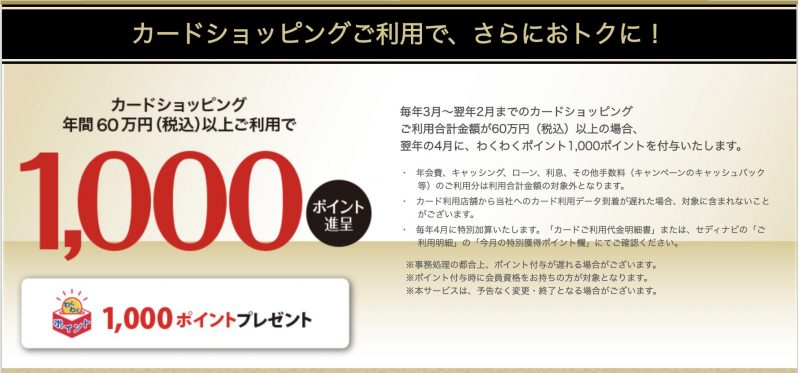 カードショッピング年間60万円以上(税込)利用で1,000ポイントが付与されます
