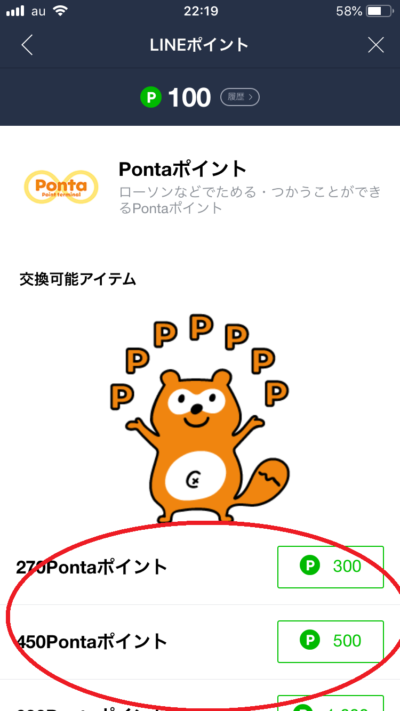 ポイント交換単位 LINEポイント300P → Pontaポイント 270p