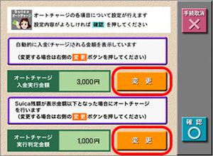 ⑦ 現在のオートチャージ設定金額を確認し、設定金額を変更する場合は「変更」を選択し、以降画面の案内に従います。