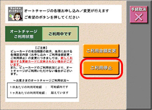 ⑥ オートチャージの利用を停止する場合は、「ご利用停止」を選択します。