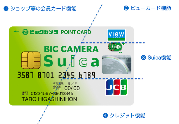 提携カードには「クレジットカード機能」の他に「ビューカード機能」「Suica機能」、そして「提携先の会員カード機能」が付いているんです。