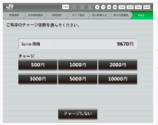 Suica定期券を選んだ場合はチャージ金額を選びます。選ばずに「チャージしない」ボタンを押しても大丈夫です。